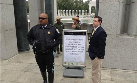 For all those interested in visiting one of these war memorials, paragraph 10 of the National Park Systems Closure Determination and Notice directive issued October 1, 2013, in conjunction with federal regulations, provides that the “National Mall and Memorials Parks and areas administered by the NPS Liaison to the White House in Washington, D.C., and Independence National Historic Park in Philadelphia, Pennsylvania” are open to those wishing to exercise their First Amendment rights – your rights to religious expression, free speech, press, to “peaceably assemble,” and yes, to “petition the Government for a redress of grievances.”